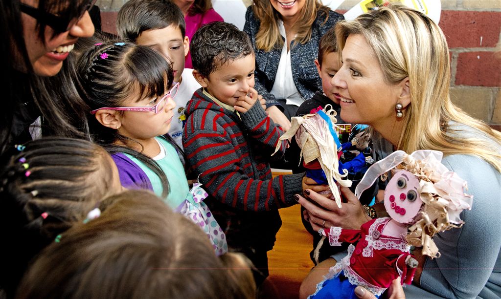 De opvang betekent ook dat de kinderen van jongsaf goed worden opgevangen en een goede start krijgen terwijl hun moeders de handen vrij hebben om te werken. Máxima, die in Colombia op werkbezoek is als speciaal vertegenwoordiger voor de VN, sprak ook met een aantal moeders. Zij steunen elkaar ook onderling door bijvoorbeeld microkredieten te verlenen, waardoor voor het werk belangrijke aankopen kunnen worden gedaan.
