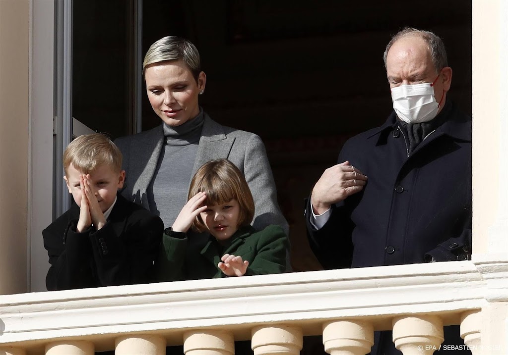 Albert had een mondkapje op en nam afstand van zijn vrouw Charlene en kinderen Gabriella en Jacques. Vanaf het balkon keek het gezin naar de parade en werd gezwaaid naar de aanwezigen.