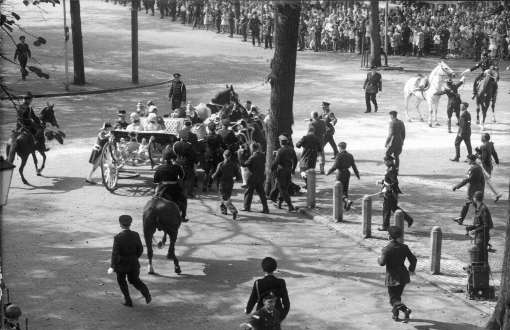 Hoewel in 1963 de paarden in de stoet ook al getraind zijn op drukke situaties, slaat paard Peter van de Crème Calèche van de prinsessen Beatrix, Irene en Margriet op hol. Het rijtuig komt tegen een boom tot stilstand, en gelukkig raken de prinsessen niet gewond. De dames stappen voor het vervolg van hun rit bij koningin Juliana en prins Bernhard in de Gouden Koets.