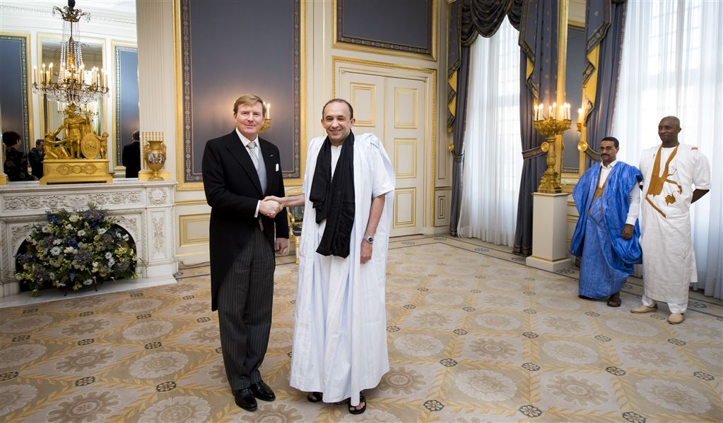 DEN HAAG – Ambassadeur Mohamedoun Daddah van Mauritanië kwam woensdagochtend in nationale dracht naar Paleis Noordeinde om koning Willem-Alexander zijn geloofsbrieven te overhandigen.