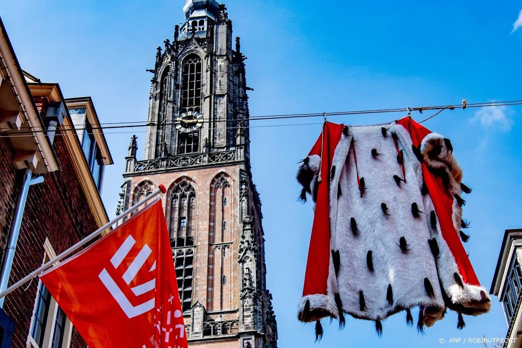 De binnenstad van Amersfoort is in de aanloop naar de komst zaterdag van de koninklijke familie voor de viering van Koningsdag al aardig oranje gekleurd. Lantaarnpalen zijn door de gemeente voorzien van vlaggetjes met het voor de festiviteiten gekozen logo, dat alle feestvierenden een wij-gevoel moet geven.