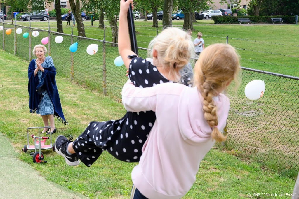 Prinses Beatrix had er woensdagmiddag enorm zin in. Ze kwam nog net niet de Baarnse speeltuin binnen huppelen, maar uit alles bleek dat ze blij was om na ruim drie maanden van publieke inactiviteit weer naar buiten te treden. En waar kon dat beter bij de Buitenspeeldag van haar ‘eigen’ Jantje Beton, waarvan ze alle vele jaren een zeer betrokken beschermvrouw is.