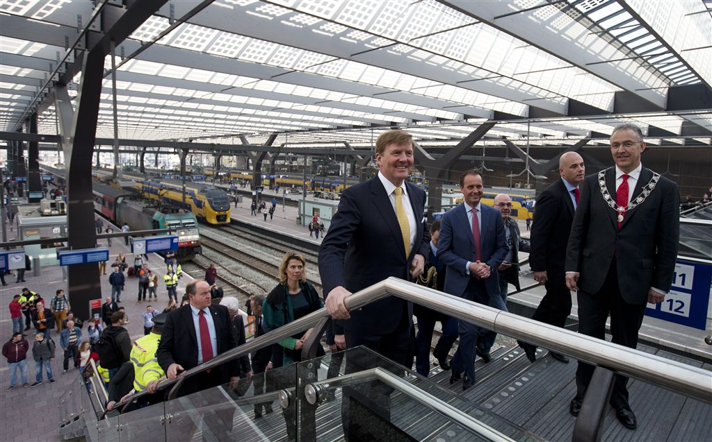 ROTTERDAM – Koning Willem-Alexander heeft donderdagmiddag het nieuwe Centraal Station in Rotterdam feestelijk geopend. De opening van Rotterdam CS is de eerste in een reeks van vier stations die momenteel worden vernieuwd: Den Haag, Amsterdam en Utrecht.Duizenden mensen waren getuige van de opening. Dit werd gevierd met muziek en dans in de centrale hal. Mede door het fraaie weer waren er meer mensen naar het station gekomen dan verwacht. Dat leidde vooral bij de ingang tot veel gedrang. Een deel van de mensen mocht vanwege die drukte niet naar binnen, maar wilde dat wel. Later werd het publiek alsnog binnengelaten. De koning kreeg na de muziek- en dansshow een rondleiding door het station.