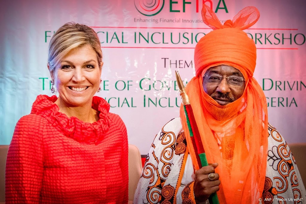 Zo was hij vorig jaar in New York aanwezig bij de viering van haar tienjarig jubileum als speciaal pleitbezorger van de Verenigde Naties op het gebied van het beter toegankelijk maken van financiële diensten. Bij Máxima’s landenbezoek aan het West-Afrikaanse land kwam hij haar speciaal opzoeken in de hoofdstad Abuja, inclusief zijn bont uitgedoste hofhouding.