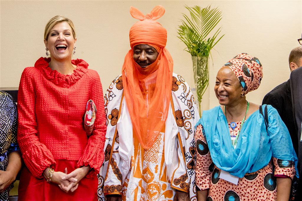 Koningin Máxima heeft donderdagmorgen in haar hotel in Abuja de kennismaking vernieuwd met de invloedrijke emir van Kano, Muhammadu Sanusi II.