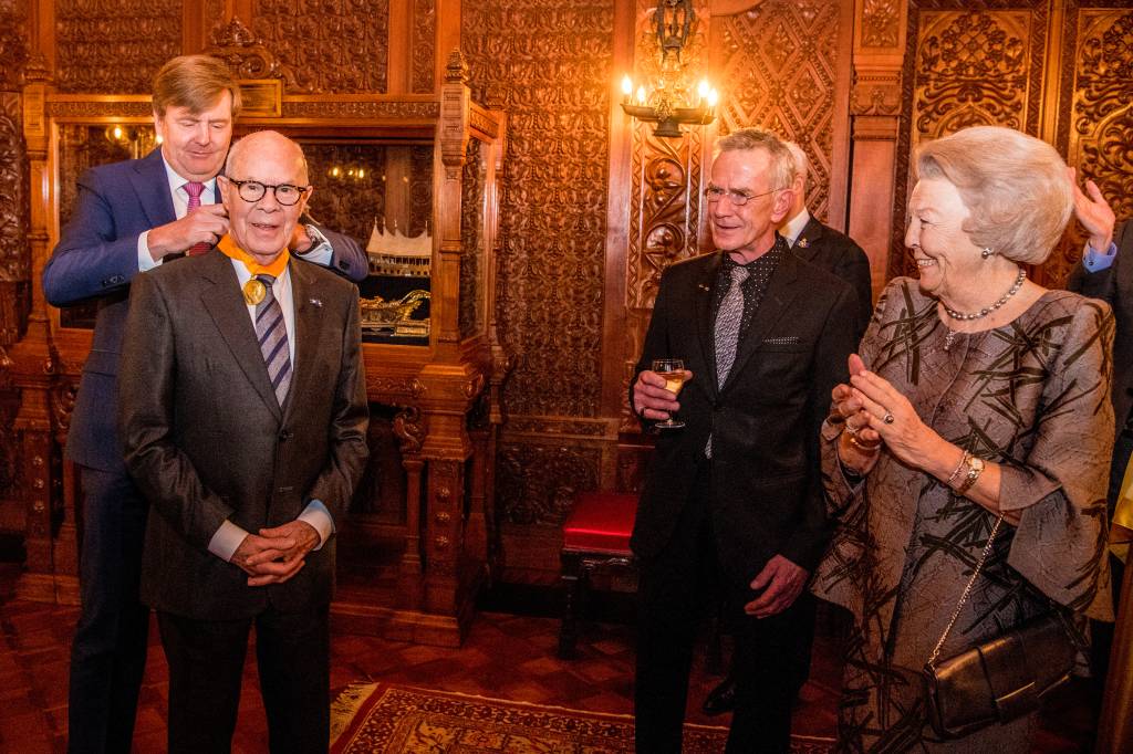 Choreograaf Hans van Manen kreeg maandag uit handen van koning Willem-Alexander de Eremedaille voor Kunst en Wetenschap van de Huisorde van Oranje.