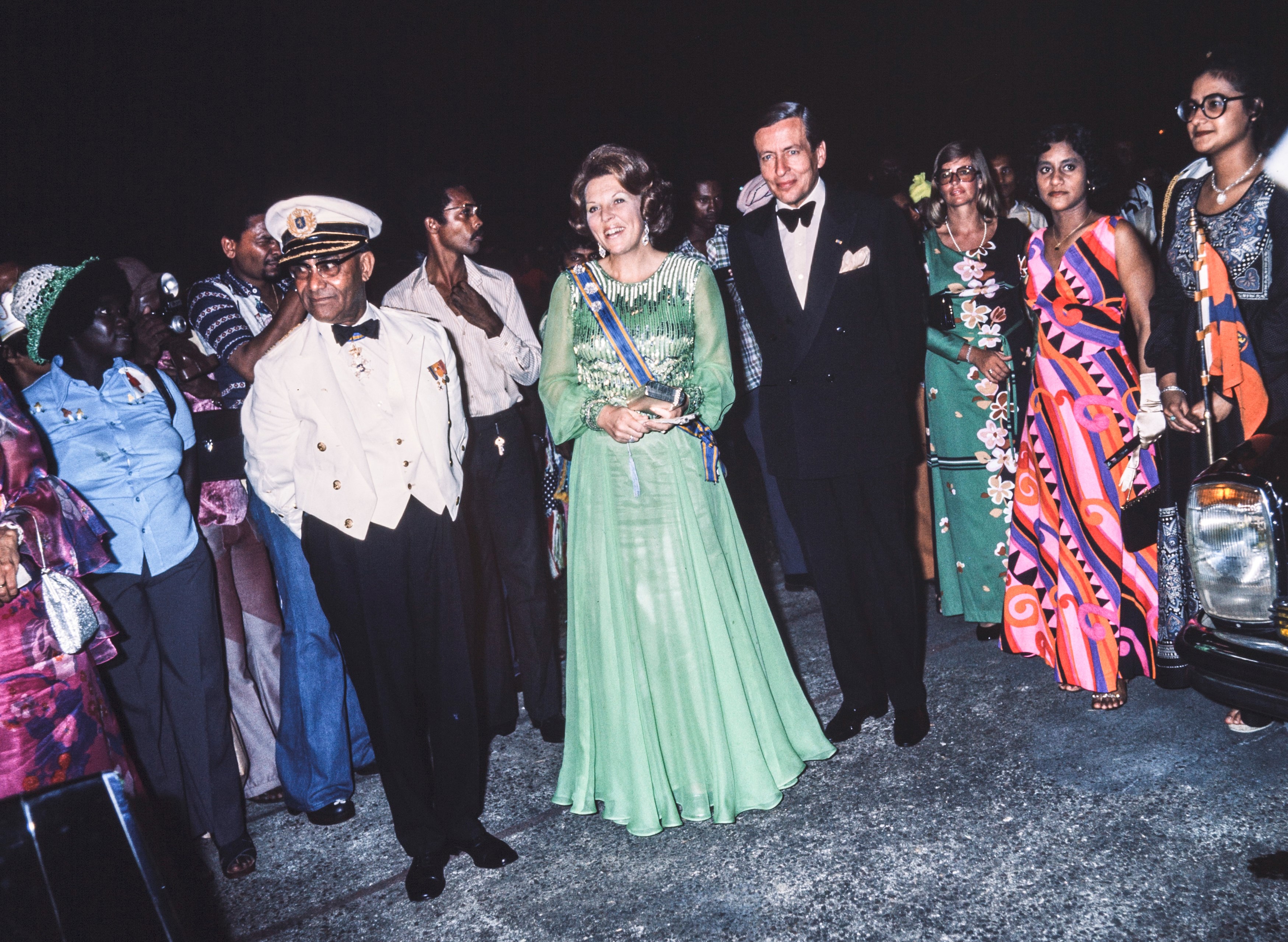 De galajurk die prinses Beatrix droeg bij de onafhankelijkheidsceremonie van Suriname in 1975 is vanaf 5 oktober te zien in de Nieuwe Kerk in Amsterdam. Het kledingstuk is onderdeel van de ‘De Grote Suriname-tentoonstelling’ die tot met 2 februari te zien zal zijn.
