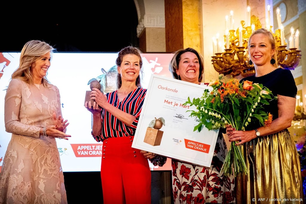 Drie organisaties hebben donderdagmiddag uit handen van koningin Máxima een Appeltje van Oranje gekregen. Stichting Met je hart werd bekroond met het Grote Appeltje.