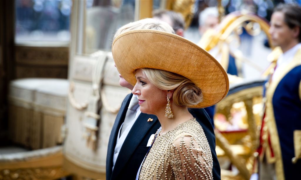 Niet alleen de gouden koets, de troonrede en het koffertje zijn symbolen van Prinsjesdag. Ook hoeden maken deel uit van de traditie, redeneerde het Belasting & Douane Museum. Daarom heeft het Koninklijk Huis voor de expositie in Rotterdam de hoed uitgeleend die Máxima op Prinsjesdag in haar eerste jaar als koningin droeg. Het is de goudkleurige hoed van sinamay die ze combineerde met een eveneens goudkleurige jurk van ontwerper Jan Taminiau.