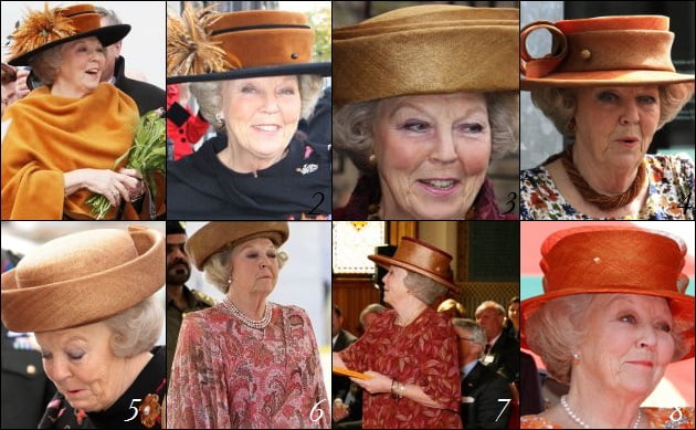 Als je prinses bent en de achternaam Van Oranje draagt, dan kunnen hoeden in de gelijknamige kleur natuurlijk niet ontbreken. Toch is oranje niet een veelvoorkomende kleur in de garderobe van prinses Beatrix. Vorsten zet voor u de oranje hoeden op een rij die de prinses de afgelopen 5 jaar droeg. Naar welke gaat uw voorkeur uit?