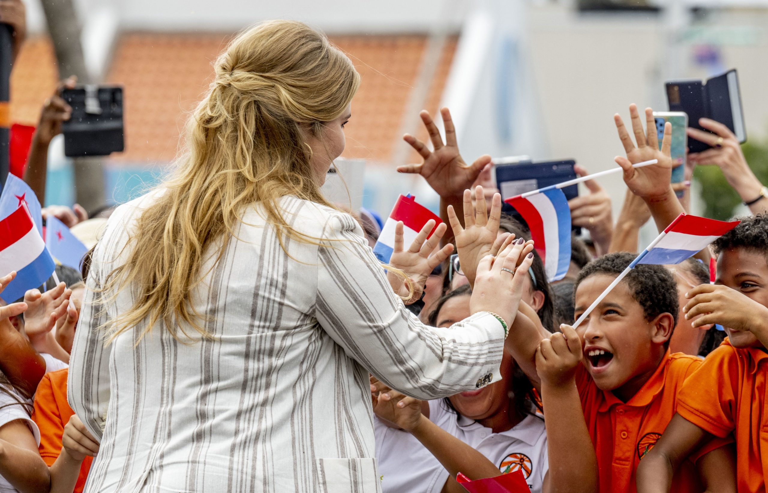 Honderden Arubaanse en Nederlandse kinderen stonden maandagochtend op Aruba langs de route waar prinses Amalia, koning Willem-Alexander en koningin Máxima aankwamen. De kinderen achter de dranghekken waren licht gespannen, maar vooral enorm uitbundig. Oranje shirts waren aangetrokken, de Nederlandse vlaggetjes wapperden en er werd gejoeld. “Amalia is hier nog nooit geweest. Zo spannend!”, vertelt één van hen.