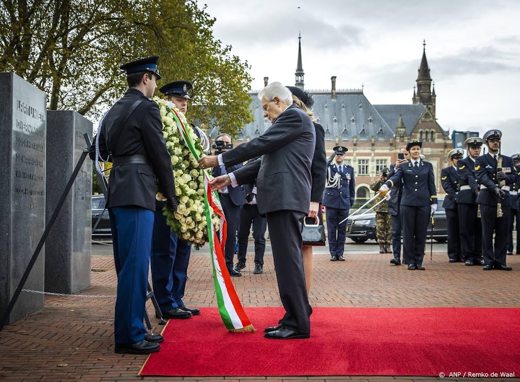 De president van Italië Sergio Mattarella en zijn dochter Laura Mattarella hebben donderdag een krans gelegd bij het Herdenkingsmonument 1940-1945 in Den Haag. Ze werden daarbij vergezeld door minister-president Mark Rutte en Jan van Zanen, burgemeester van Den Haag.
