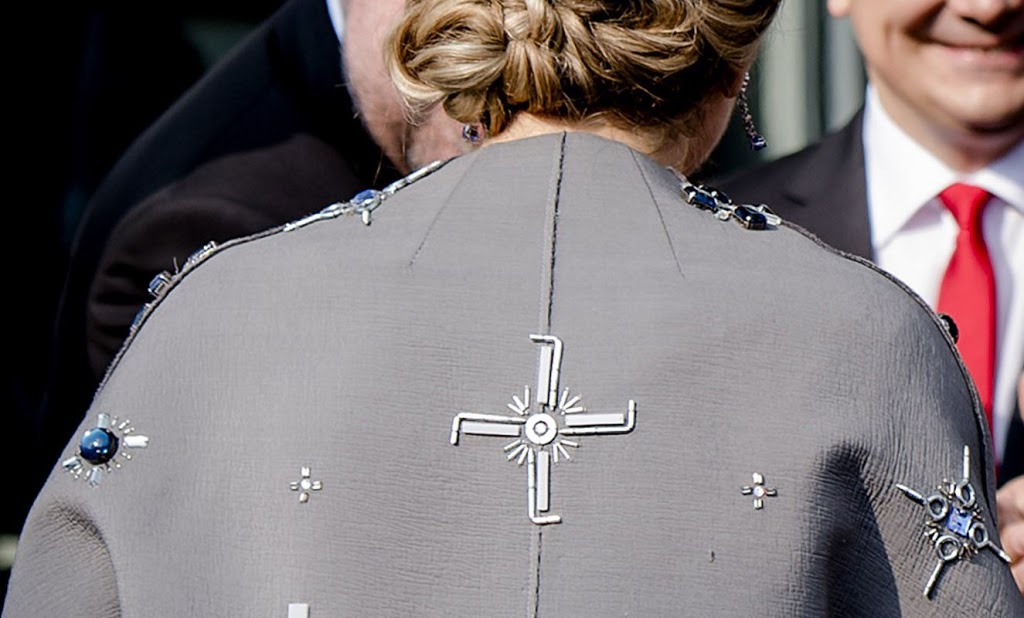 Op afstand zou een aantal versieringen de indruk wekken van een hakenkruis, zo meenden een aantal Duitsers op Twitter. ‘Is dat satire of gewoon slechte smaak’, twitterde onder meer politieman Oliver von Dobrowolski. Er ontstond een discussie over jas en die leidde tot berichtgeving in de media. ‘Wat draagt koningin Máxima nu’, vroeg Die Welt zich af. De combinatie van de jas en een bezoek aan het nauw met het nazi-verleden verbonden Neurenberg maakte het volgens de krant extra opmerkelijk.