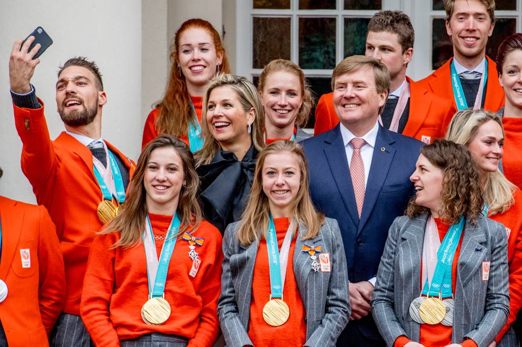 Shorttrackster Suzanne Schulting, die in Zuid-Korea verrassend goud won op de duizend meter, probeerde ook nog in beeld te komen op de selfie van Nuis, en stak uitdagend en plagend haar tong uit. Het tekende de ontspannen sfeer voor het paleis, waar de deelnemers aan de Olympische en Paralympische Spelen aan het einde van de middag werden ontvangen door het koningspaar en prinses Margriet.