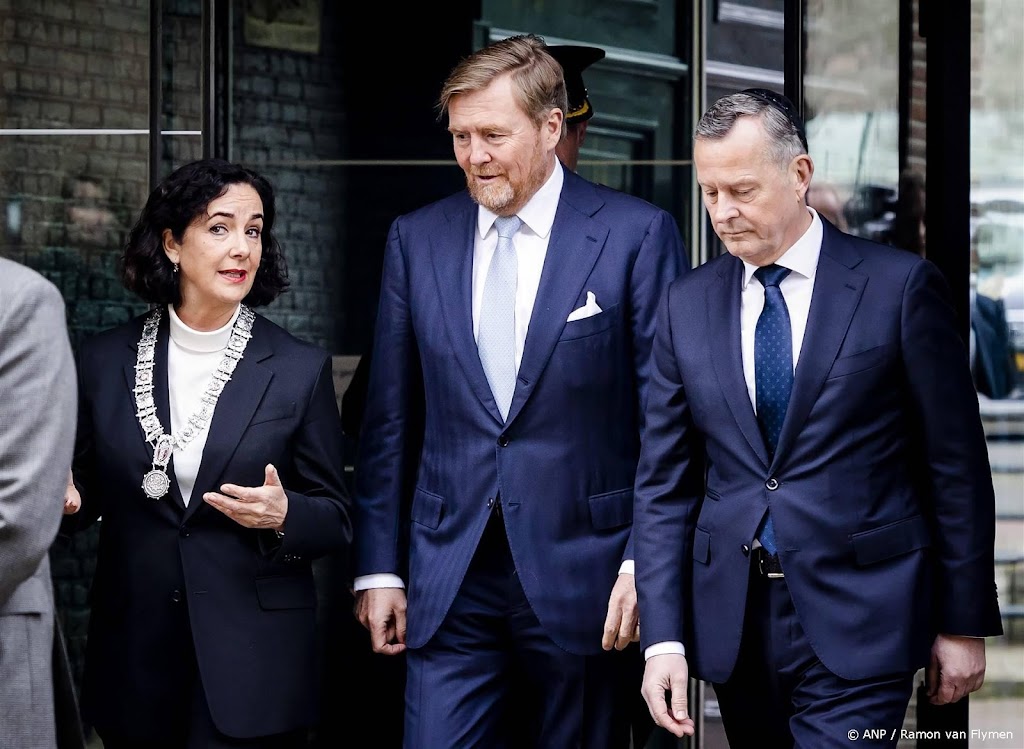 Koning Willem-Alexander is aangekomen in de Portugese Synagoge in Amsterdam voor de opening van het Nationaal Holocaustmuseum. De koning werd welkom geheten door burgemeester Femke Halsema van Amsterdam en Arthur van Dijk, de commissaris van de Koning in Noord-Holland.