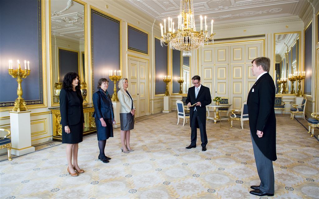 DEN HAAG – Koning Willem-Alexander heeft woensdagochtend op Paleis Noordeinde mevrouw A. Van Strien, mevrouw M. Van Hilten en mevrouw E. Faase beëdigd tot raadsheren van de Hoge Raad der Nederlanden. Dat deed de koning op Paleis Noordeinde in Den Haag.