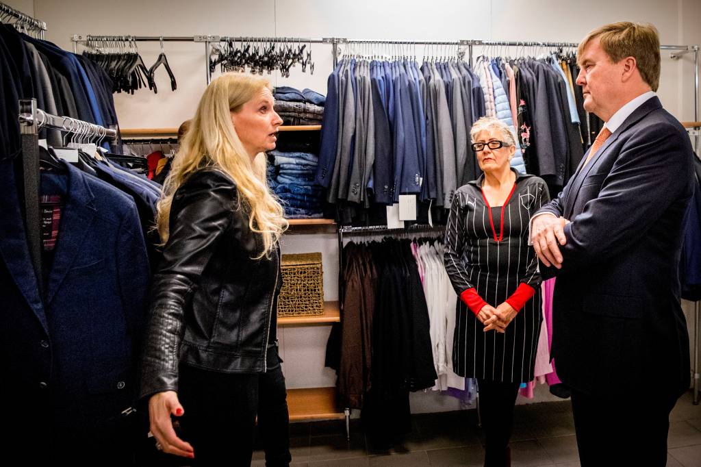 Koning Willem-Alexander bracht dinsdagmorgen een werkbezoek aan Dress for Success in Amsterdam. Deze stichting voorziet werkzoekenden van representatieve kleding en praktische ondersteuning bij hun sollicitaties.