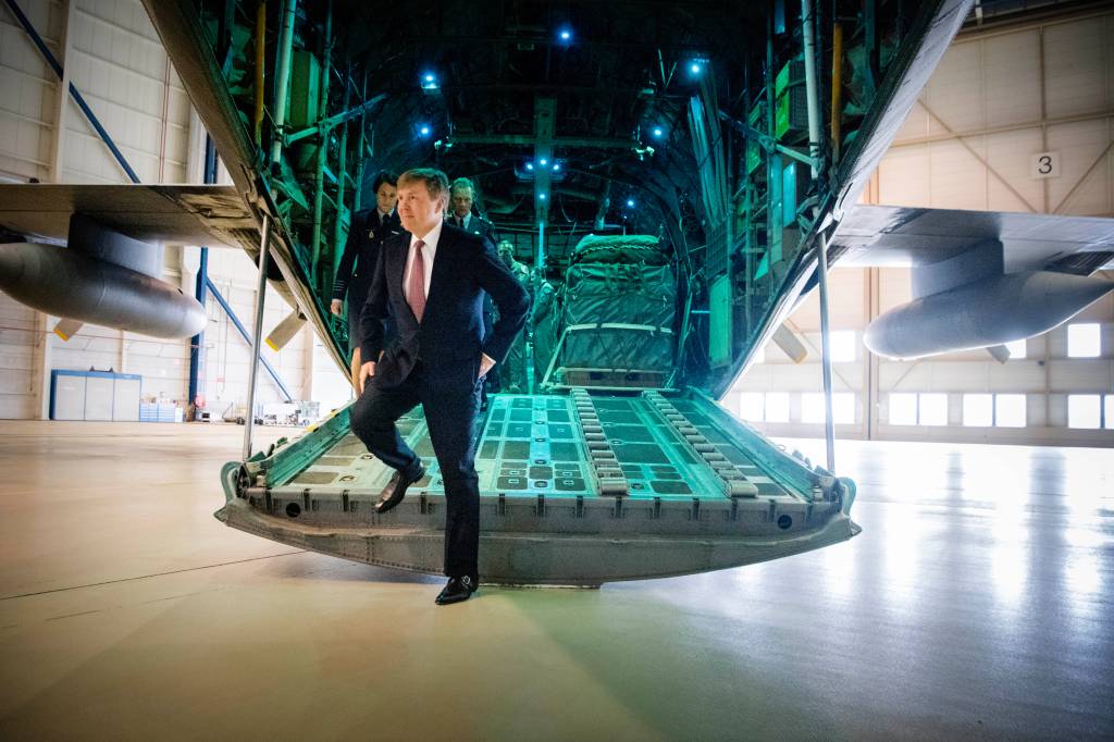 Tot slot van zijn rondgang bekeek hij ook een Hercules van binnen en werd verteld over de nieuwe taken die het werkpaard van de luchtmacht op zich neemt, zoals het droppen van parachutisten en hulpgoederen en de uitbreiding van de samenwerking met andere strijdmachtonderdelen. ,,Daarnaast doen we natuurlijk ook het gewone luchttransport. Het KLM-werk zeg maar”, zei de vliegtuigcommandant. ,,Daar is helemaal niks mis mee”, vond de voor KLM vliegende Willem-Alexander.