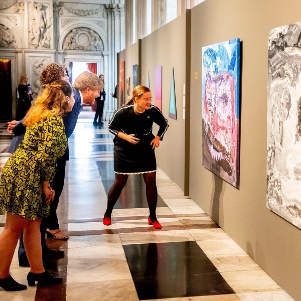 Willem-Alexander was opgetogen dat naast het werk van de drie nieuwe winnaars Rinella Alfonso, Philipp Gufler en Hend Samir, de komende maanden in het paleis ook werk is te zien van vorige winnaars. “Ik vind het fantastisch dat we ook een beeld krijgen van de ontwikkeling van een aantal deelnemers uit de laatste veertig jaar. Zeg maar: de tijd dat mijn moeder en ik de traditie van de Koninklijke Prijs dragen.”