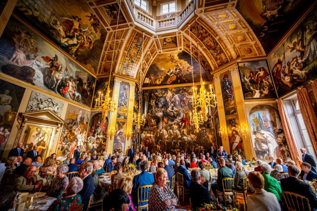 Koning Willem-Alexander heeft woensdag tijdens de lunch ter gelegenheid van zijn tienjarig koningschap een eerbetoon gegeven aan zijn gasten. Onder de genodigden waren honderd mensen die volgens anderen een tien verdienen en daarom met de koning mochten lunchen op Paleis Huis ten Bosch.