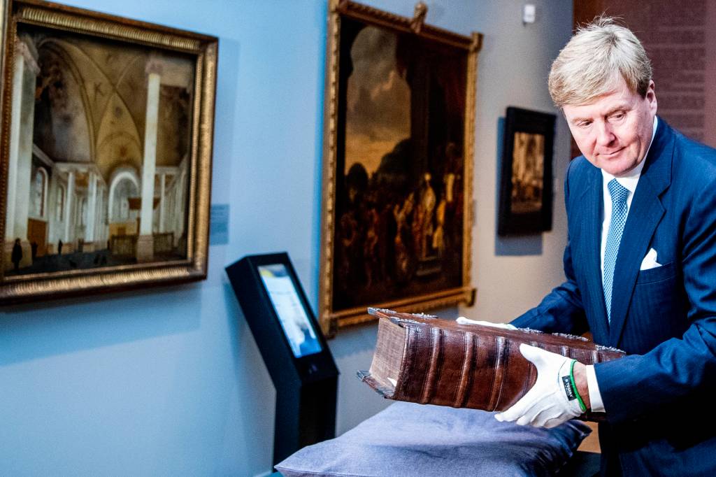 Behalve de grote Statenbijbel van stadhouder Willem IV die hij als openingshandeling in een vitrine plaatste, zijn er op de expositie nog veel meer bijbels uit koninklijk bezit te zien.