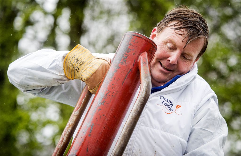 De koning toonde ondertussen zijn vaardigheid bij het plaatsen van palen, waarlangs later schrikdraad moet worden gespannen om de boerderijdieren weg te houden van de sloot rond het terrein van Het Akkertje. Het klussen gebeurde in het kader van NLdoet, dat dit jaar voor de 10e keer wordt georganiseerd. Over heel Nederland wordt vrijdag en zaterdag door 325.000 vrijwilligers op 8700 plaatsen een helpende hand toegestoken. Prinses Beatrix en prinses Margriet deden dat ook, in Zeewolde.