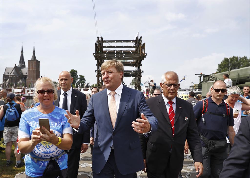 Koning Willem-Alexander is vrijdag met het Vierdaagselegioen de Maas bij Cuyk overgestoken via een speciaal gebouwde pontonbrug. Elk jaar bouwt Defensie deze tijdelijke brug om de Vierdaagselopers over te laten steken van Brabant naar Gelderland.