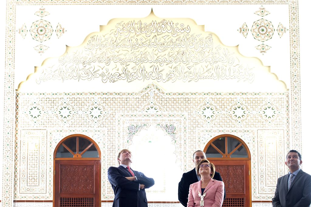 Van de school ging Willem-Alexander naar de naastgelegen Marokkaanse moskee, waar onder meer de moskeebrand in Helden uit 2004 ter sprake kwam. Ook hier stond het ’thuis voelen’ centraal in de gesprekken.