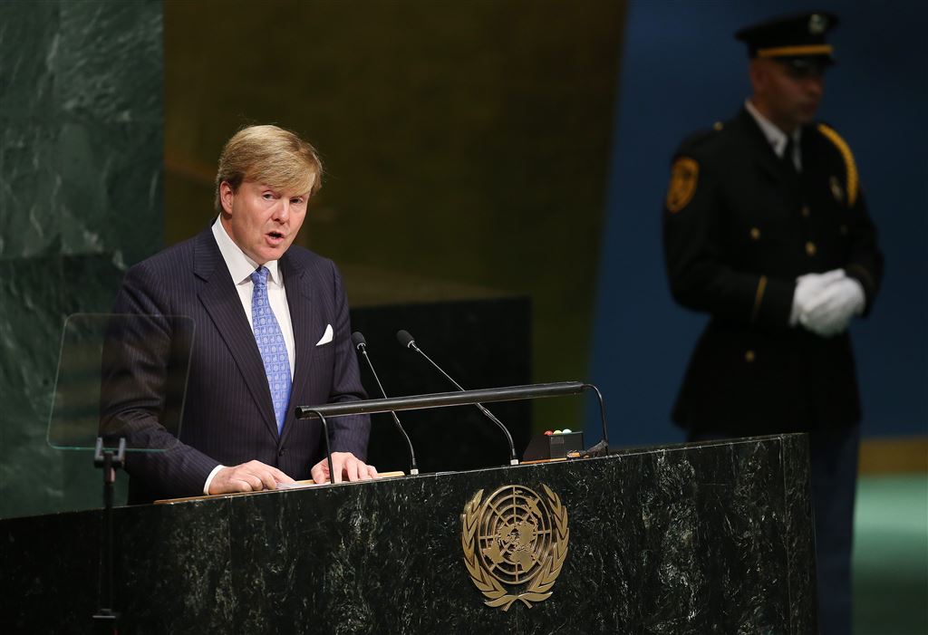 Voor koning Willem-Alexander was de grote vergaderzaal vervolgens zijn werkplek in afwachting van het tijdstip dat hij de Algemene Vergadering kon toespreken. Volgens het voorlopige tijdschema zou dat rond het middaguur zijn, maar in werkelijkheid was het bijna twee uur later omdat de elf sprekers voor de koning royaal de tijd namen om de wereld toe te spreken.