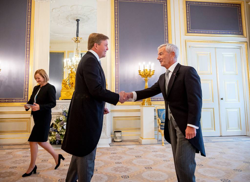 Koning Willem-Alexander ontving woensdag ook de ambassadeur van De Seychellen. Op het paleis bieden de nieuwe ambassadeurs hun geloofsbrieven aan de koning aan. Pas als ze dat hebben gedaan, kunnen ze officieel aan het werk in Nederland.