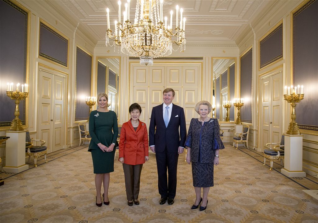 DEN HAAG- Koning Willem-Alexander bood maandag president Park Geun-hye van Zuid-Korea een lunch aan op Paleis Noordeinde in Den Haag. Koningin Máxima en prinses Beatrix waren daarbij aanwezig.
