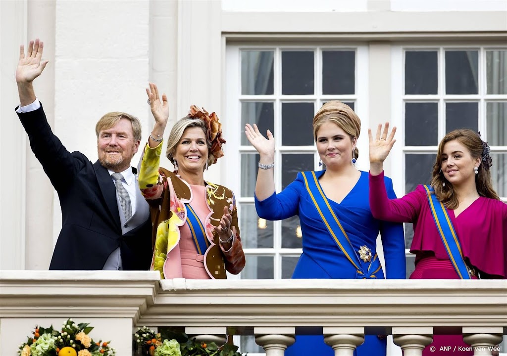 Op het balkon stonden naast de koning en koningin ook de prinsessen Amalia en Alexia, prins Constantijn en prinses Laurentien. Na korte tijd gingen ze weer naar binnen.