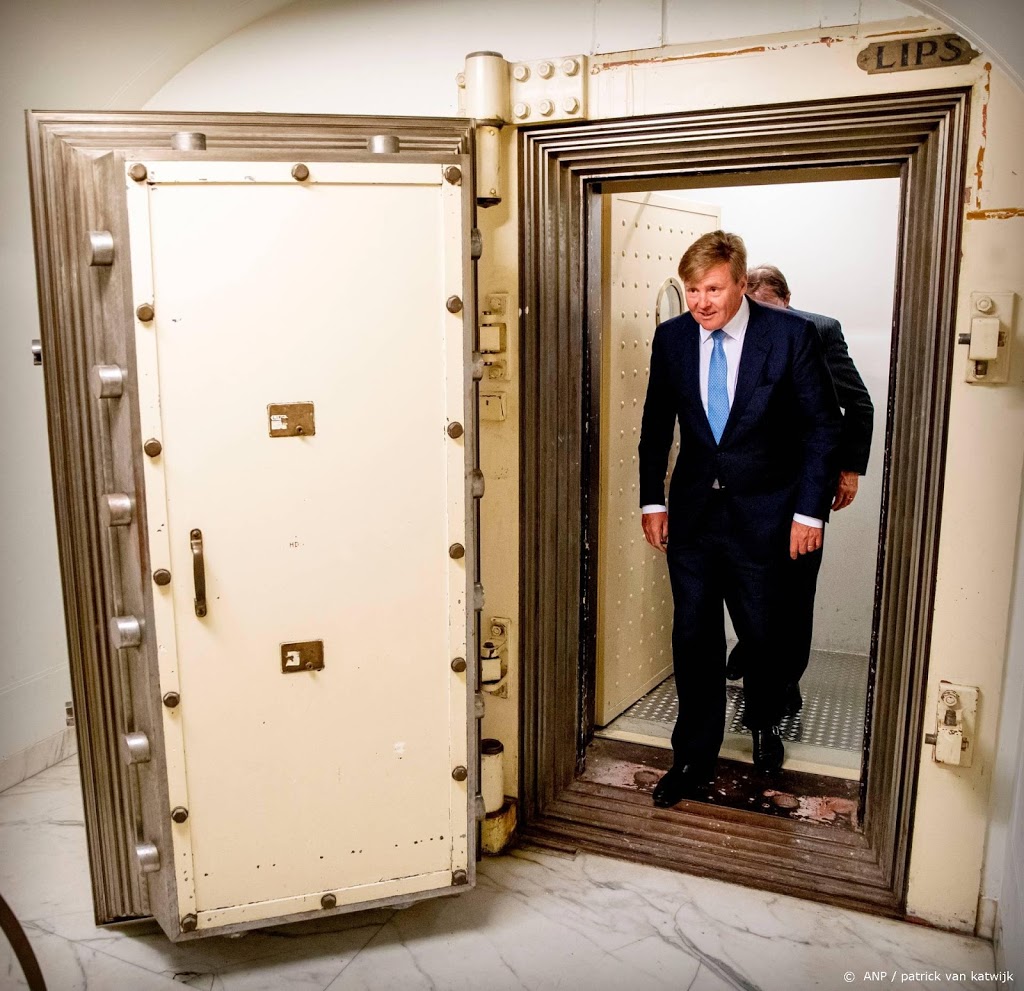 Het archief bevindt zich achter een stevige kluisdeur, die herinnert aan de banken die eerder in het pand gehuisvest waren. In de vitrine van het archief zag de koning onder meer een telegram liggen van Adolf Hitler, een brief van de toenmalige Amerikaanse president Roosevelt en brieven van de Britse oud-premier Winston Churchill aan Pieter Gerbrandy, die gedurende de oorlogsjaren minister-president van Nederland was.