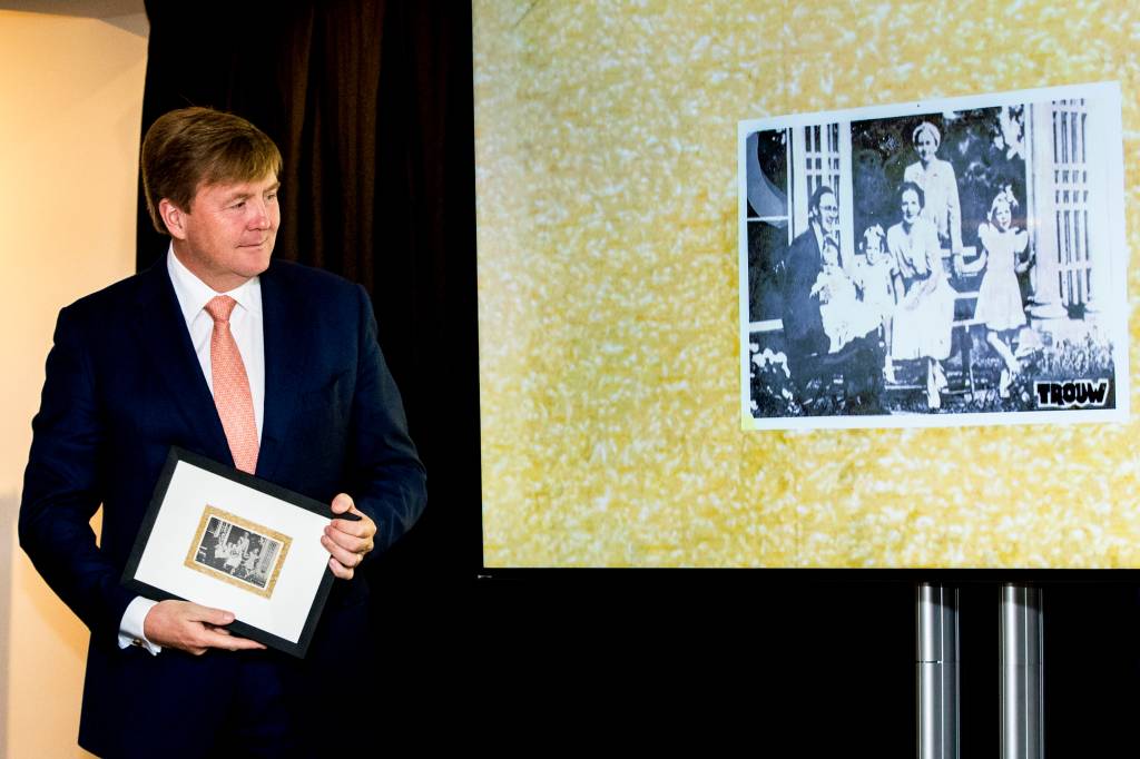 Koning Willem-Alexander heeft donderdag het vernieuwde Anne Frank Huis geopend. Hij kreeg een reproductie van een ansichtkaart die in de kamer van Anne Frank hangt in het Achterhuis. Op de kaart staat een afbeelding van de koninklijke familie.