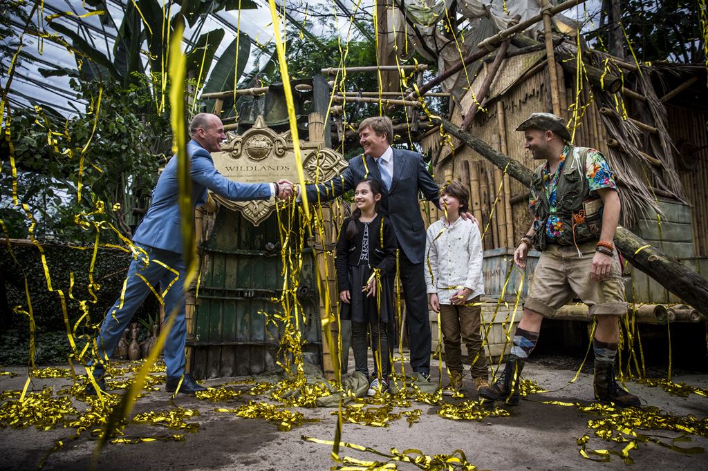 In het jungletheater opende de koning officieel de dierentuin. Daarna maakte hij nog een tochtje in een boot over de junglerivier. Wildlands gaat vrijdag 25 maart open voor publiek.