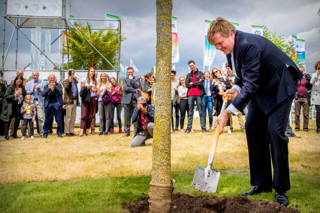 Koning Willem-Alexander heeft zaterdagmiddag bij de viering van honderd jaar Wageningen University & Research (WUR) een boom geplant. Dat deed hij met dezelfde schop waarmee zijn vader prins Claus in 1991 eveneens een boom in Wageningen plantte.