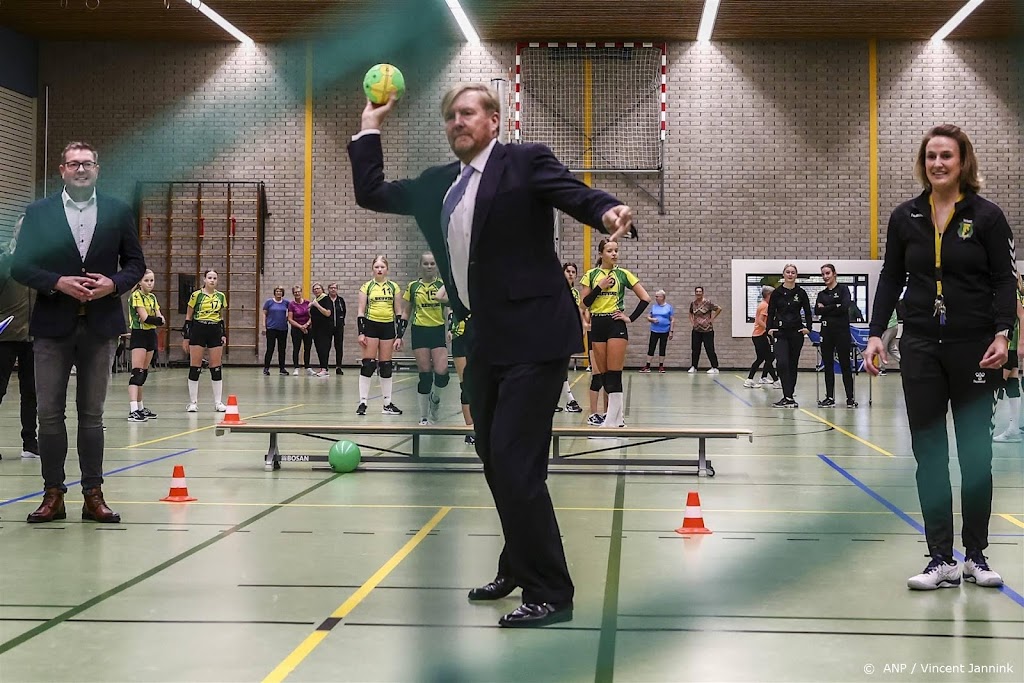 Koning Willem-Alexander heeft zijn bezoek aan het Overijsselse dorp Hengevelde dinsdagmiddag sportief afgesloten. De vorst ontmoette in het dorpshuis meerdere sportverenigingen en gooide zelf een handbal op een doel.