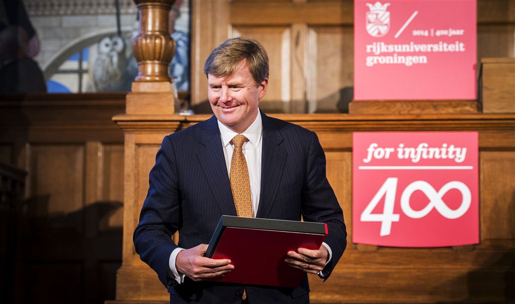 Het gesprek ging vooraf aan de start van de viering van 400 jaar Rijksuniversiteit Groningen. Daar gaf de koning het startschot voor de feestmaand RUG400. Op de Rijksuniversiteit Groningen kreeg hij uit handen van rector magnificus Elmer Sterken een fotocollectie overhandigd die is gemaakt door oud-NOS Journaal-presentatrice Sacha de Boer. Haar foto’s verbeelden het ‘Groninger DNA’.