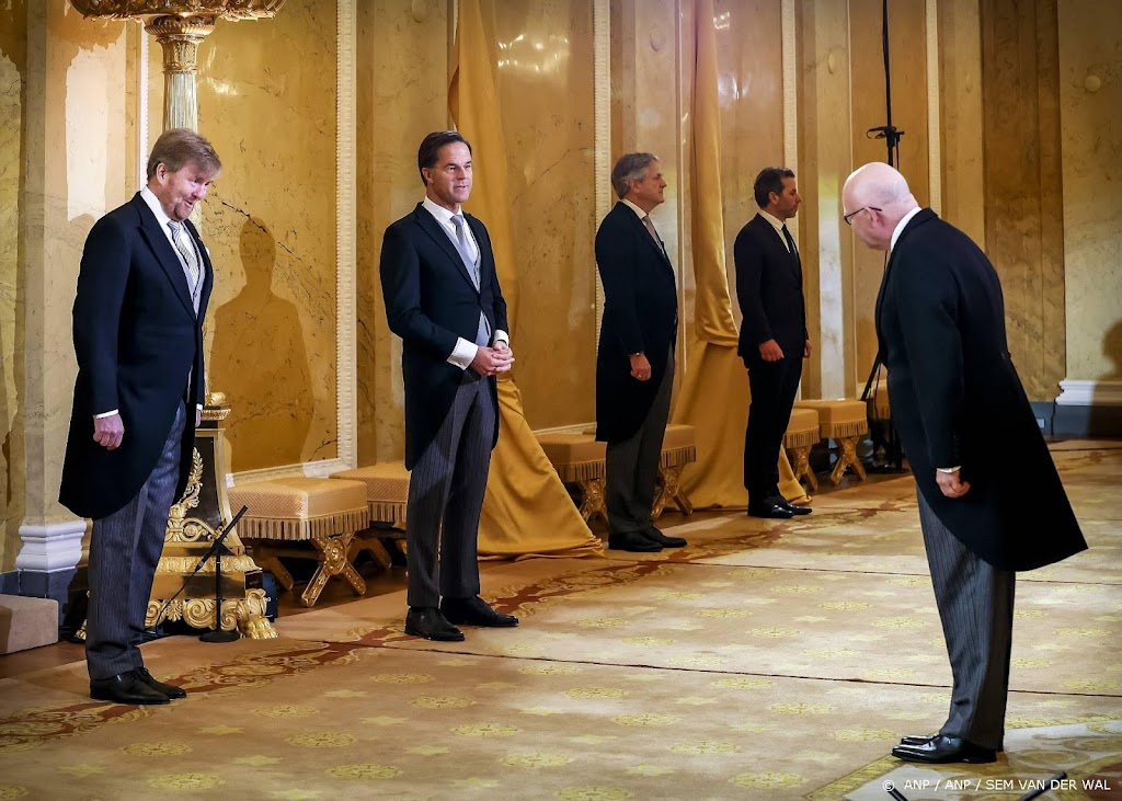 Koning Willem-Alexander heeft maandagochtend het vierde kabinet van Mark Rutte beëdigd. In de Balzaal van Paleis Noordeinde legden eerst de ministers, en daarna de staatssecretarissen de eed of belofte af.
