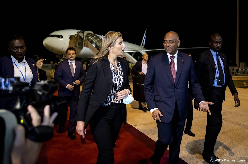 Koningin Máxima is zondagavond aangekomen in Ivoorkust. Het Air France-toestel waar de koningin mee reisde, landde om 21.00 uur lokale tijd op de luchthaven van Abidjan, waar zij werd verwelkomd door de premier van Ivoorkust, Patrick Achi. Die zei dat hij blij was dat de koningin was aangekomen, waarop de twee in het Frans met elkaar in gesprek gingen.