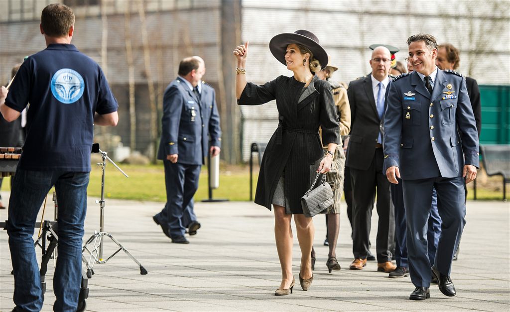 EINDHOVEN – Koningin Máxima heeft woensdagochtend een bezoek gebracht aan het muziekproject Young Musicians Spread Their Wings op vliegbasis Eindhoven. Ze keek hoe 250 jonge muzikanten workshops volgden onder leiding van orkestleden van de Koninklijke Luchtmacht.