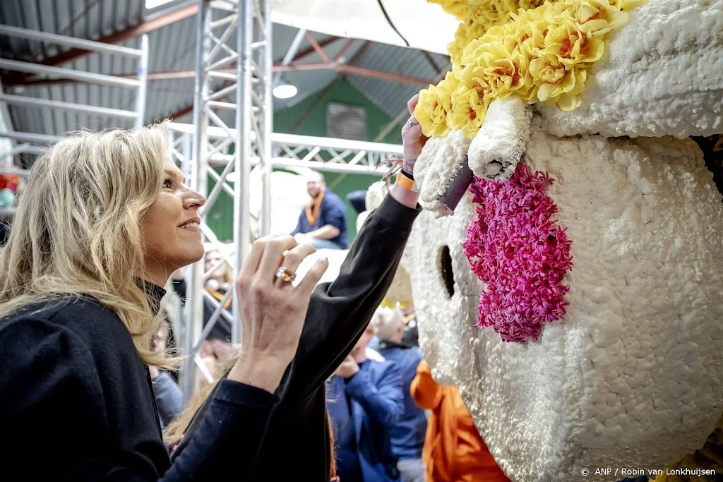 “Het ruikt hier gelijk al fantastisch”, zo kwam koningin Máxima woensdag aan bij de opbouwdagen van het Bloemencorso Bollenstreek in een zonovergoten Sassenheim. Carla Breuer, de burgemeester van de gemeente Teylingen, stak daar samen met de koningin de eerste bloem op een van de wagens.
