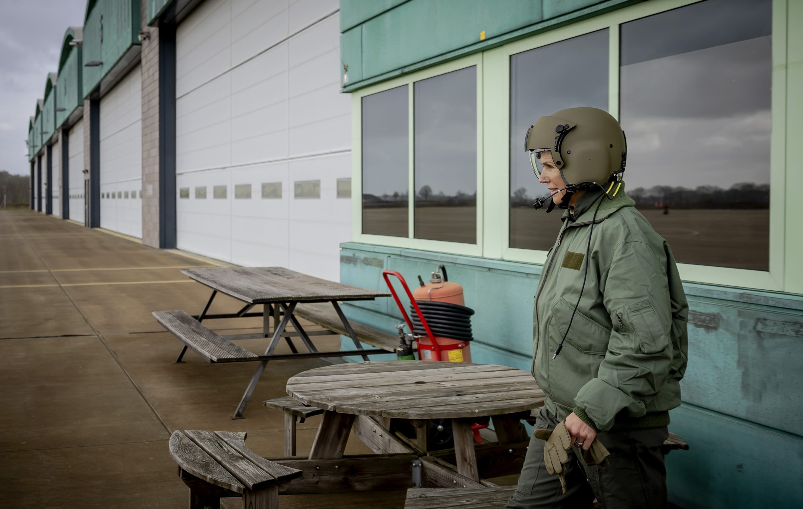 De koningin en de crew vertrokken na een veiligheidsbriefing vervolgens in de Chinook in de richting van de Oirschotse heide, op zo’n 30 kilometer van de vliegbasis. De Chinook is de grootste van de twee helikoptermodellen waarmee de DHC branden blust. Het andere model is de Cougar, waarvan er ook een aantal te vinden zijn op Gilze-Rijen.
