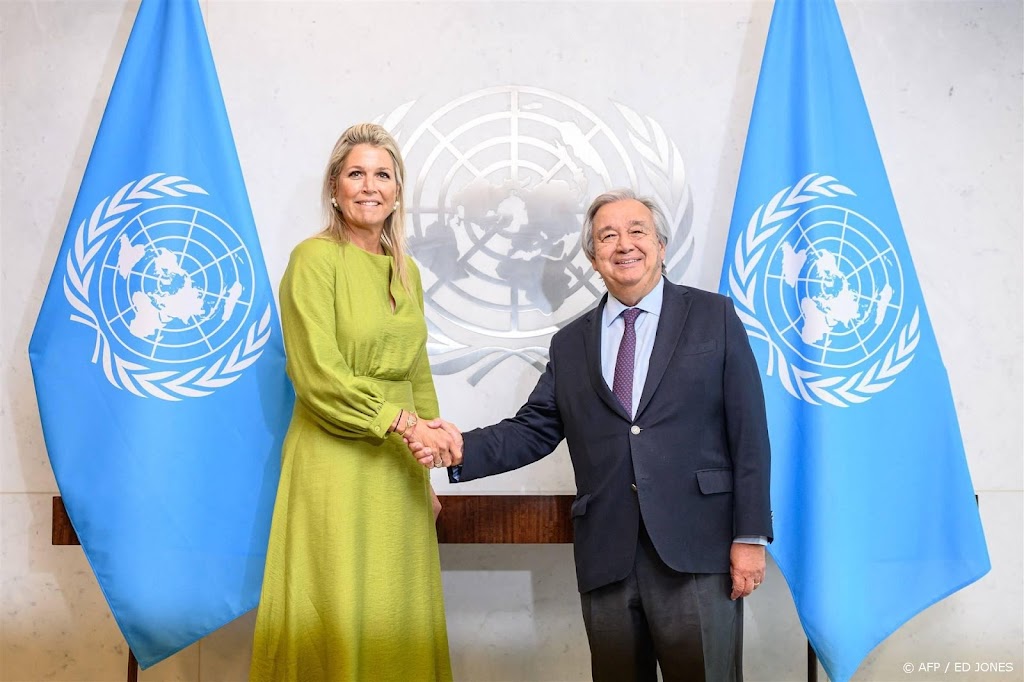 Koningin Máxima heeft dinsdag haar jaarverslag van haar VN-werkzaamheden overhandigd aan secretaris-generaal António Guterres in New York. De koningin is al jaren speciale pleitbezorger van de secretaris-generaal van de Verenigde Naties voor inclusieve financiering voor ontwikkeling (UNSGSA).