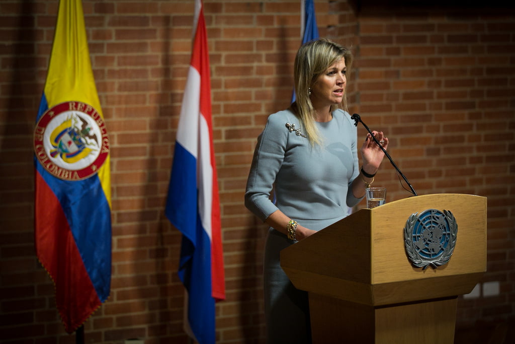 Tijdens de laatste dag van haar werkbezoek aan Colombia verscheen koningin Máxima in een lichtblauwe jurk van modehuis NATAN. De knielange creatie werd in eerste instantie gedragen in combinatie met pumps van LK Bennett en 4 symbolische armbanden, maar kreeg later op de dag een extra koninklijk tintje door een historische broche met grijze parels uit de koninklijke kluis. Zowel de accessoires als de japon kregen zo een mooie kans om nogmaals te schitteren bij koningin Máxima, die zichtbaar geniet van haar werkzaamheden voor de Verenigde Naties.