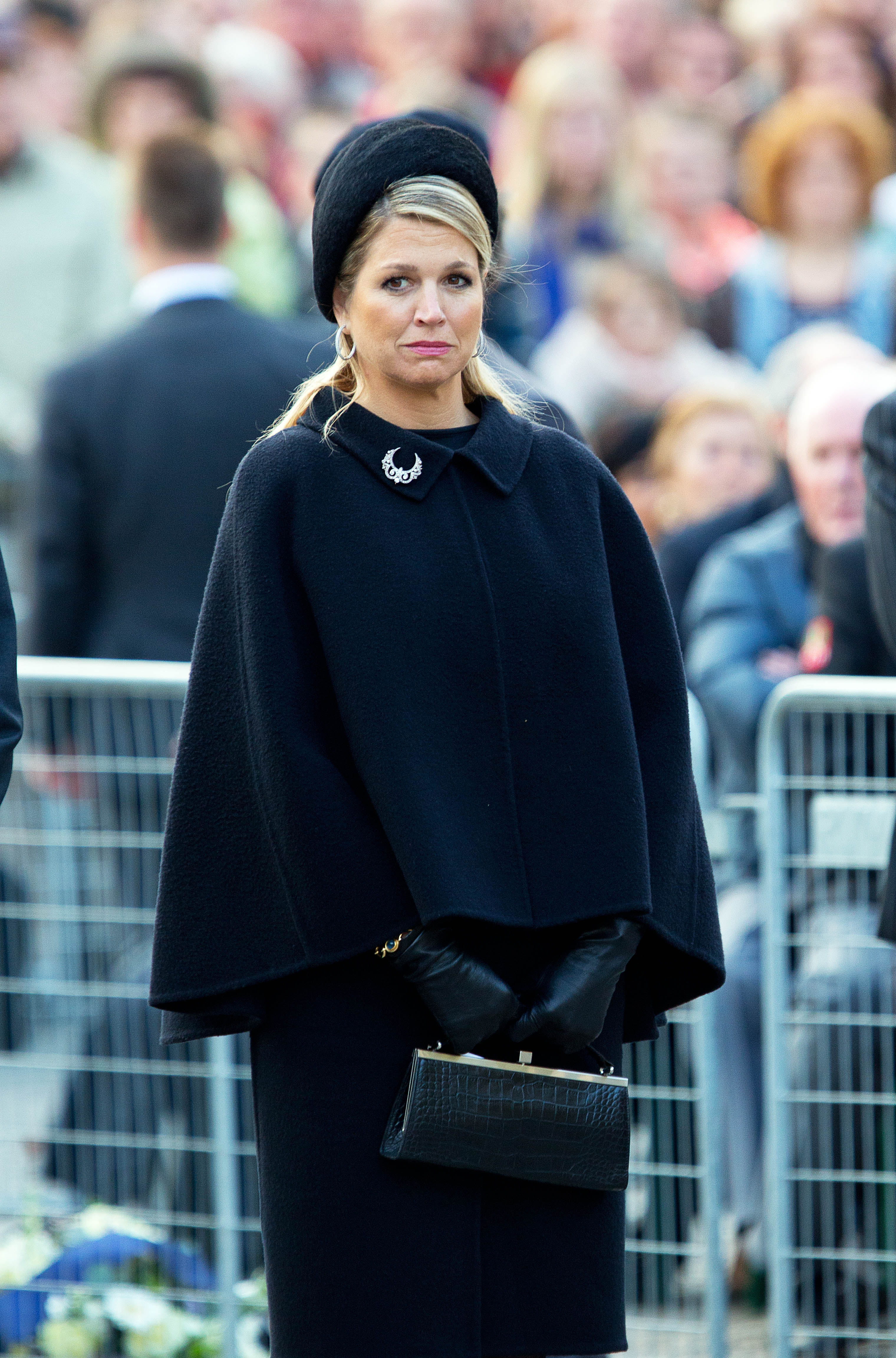 04-05-2014 Amsterdam Queen Maxima at the wearth laying ceremony (Dodenherdenking) at the WWII memorial at the monument op de Dam in Amsterdam.