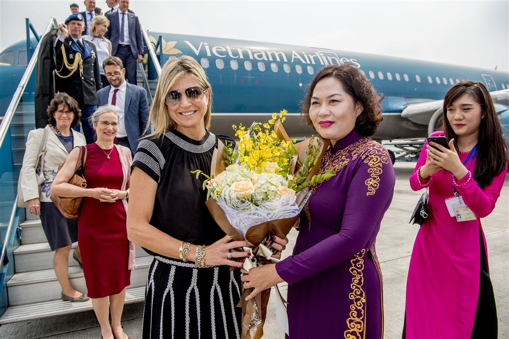 Máxima arriveerde in de Vietnamese hoofdstad vanuit Ho Chi Minhstad, de vroegere zuidelijke hoofdstad Saigon en economische motor van de socialistische republiek. De koningin is op uitnodiging van de regering in Vietnam in haar hoedanigheid als VN-pleitbezorger voor betere toegankelijkheid van financiële diensten.