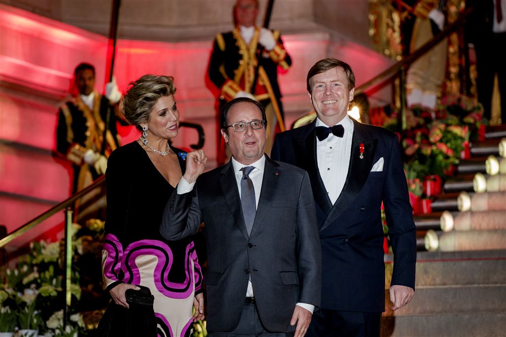 Hollande, die voor het afscheid een kwartiertje uittrok, had opeens andere verplichtingen en sloeg de zogenoemde Nederlandse contraprestatie over. Dat is bij een staatsbezoek de tegenhanger van het door de gastheer aangeboden staatsbanket op de eerste dag. Nederland had er ook flink voor uitgepakt met een zee aan bloemen, lakeien met fakkels op de trappen en de entourage van het Petit Palais zelf.