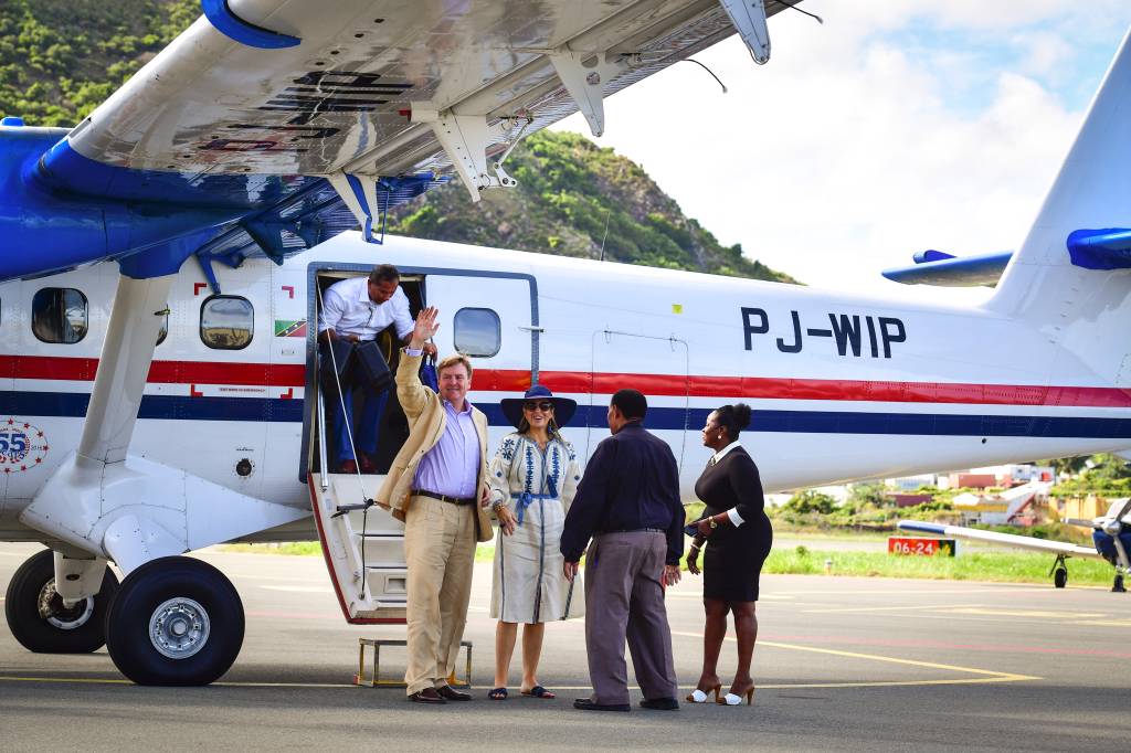 Koning Willem-Alexander en koningin Máxima zijn donderdagmiddag (lokale tijd) aan het begin van hun driedaagse bezoek aan de Bovenwindse Eilanden aangekomen op het vliegveld van Sint-Eustatius. Daar werden ze verwelkomd door plaatsvervangend gezaghebber Julian Woodley en staatssecretaris Raymond Knops van Binnenlandse Zaken en Koninkrijksrelaties.