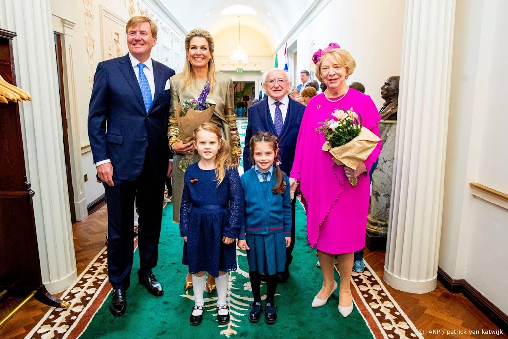 Koning Willem-Alexander en koningin Máxima hebben na de welkomstceremonie in het presidentieel paleis, waar hun staatsbezoek aan Ierland woensdagmorgen begon, in de Garden of Remembrance in Dublin eer betoond aan de Ierse onafhankelijksheidsstrijders.